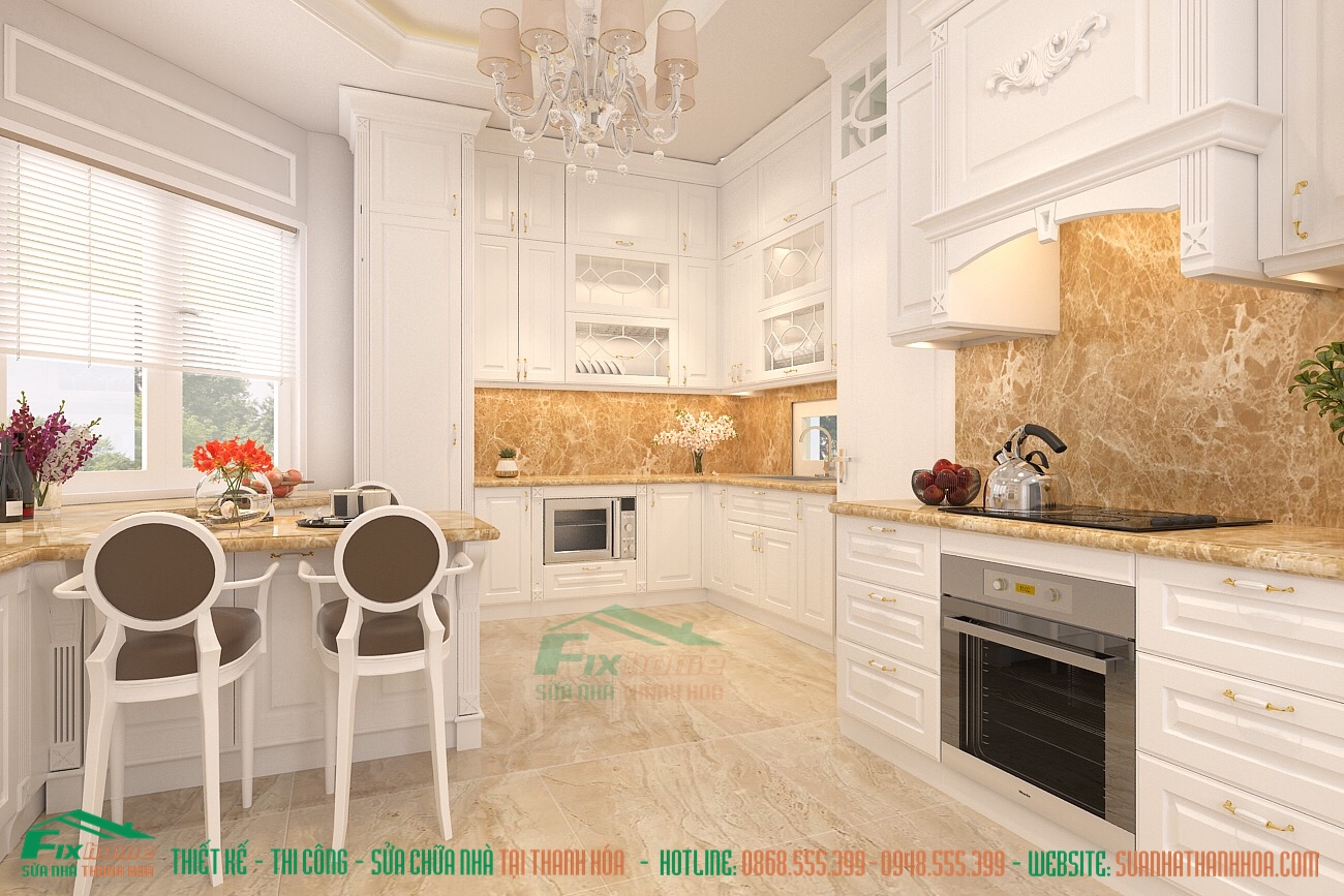 FIXHOME – Sửa nhà Thanh Hóa Nhận thi công lắp đặt tủ bếp tân cổ điển nhà chú Thấu – Bút Sơn – Thanh Hóa