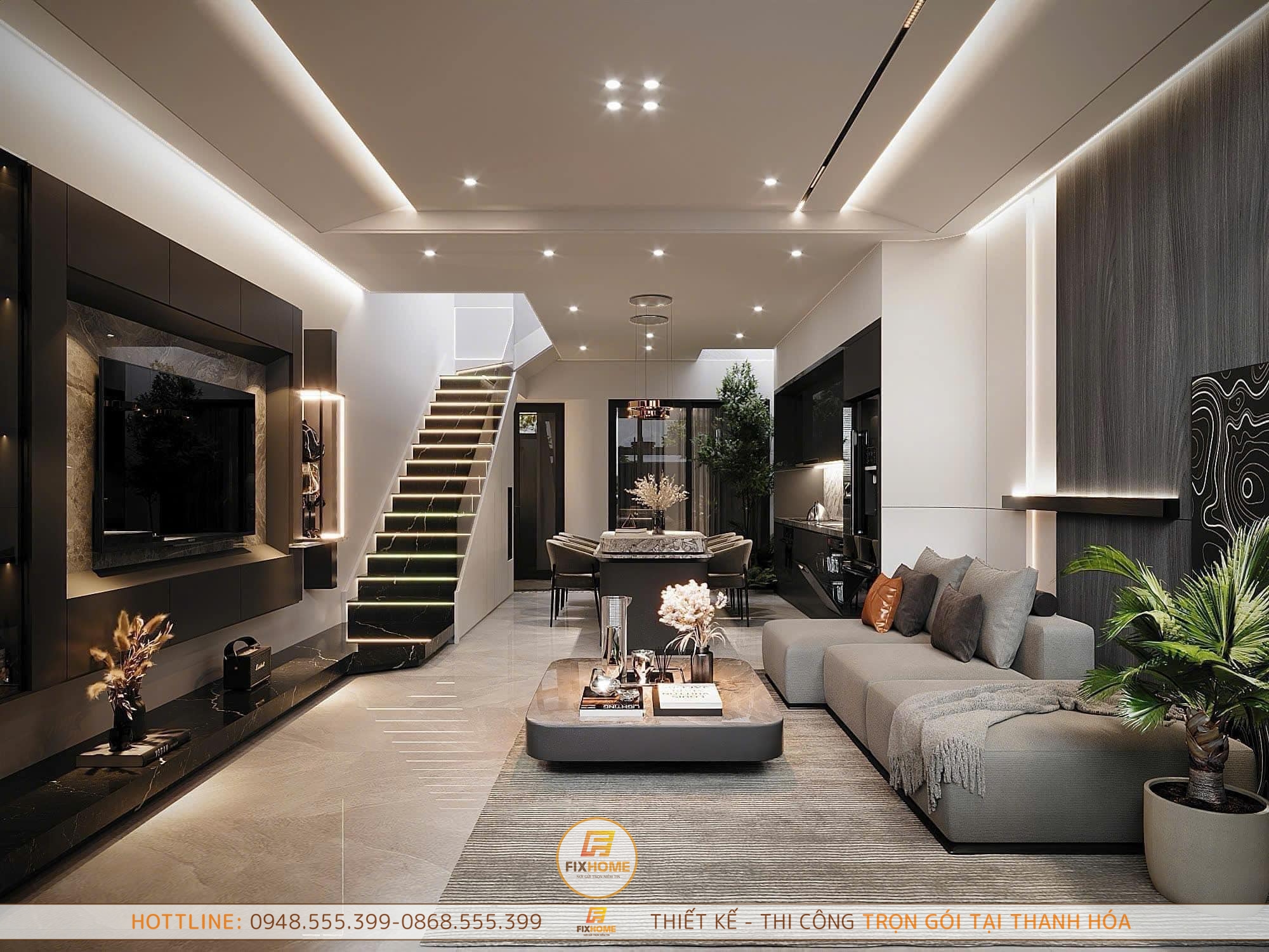 Với những hình ảnh thực tế thiết kế Kiến trúc nội thất nhà phố tại Hoằng Đại – Tp Thanh Hóa, chắc hẳn bạn đã có thêm niềm tin về đường nét sản phẩm tinh xảo tại FixHome – Sửa nhà Thanh Hóa. Bên cạnh đảm bảo về chất lượng và thẩm mỹ, gia chủ sẽ tiết kiệm 30% chi phí khi thi công nội thất và Miễn Phí thiết kế 50% khi thi công, do FixHome Thanh Hóa có xưởng sản xuất trực tiếp và quy trình làm việc khép kín.