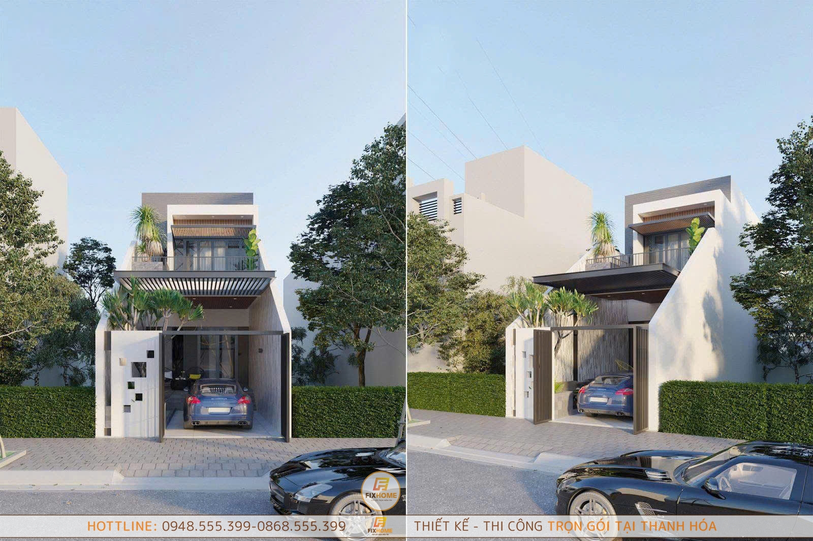 Không gian ngoại thất tuyệt đẹp của mẫu Thiết kế nhà phố 2,5 tầng hiện đại tại Hoằng Kim – Thanh Hóa.